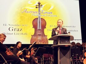Werner Amon freute sich als Präsident der Österreich-Koreanischen Gesellschaft den früheren UN-Generalsekretär Ban Ki-moon in Graz anlässlich des 20. Konzerts der Österreichisch-Koreanischen Philharmonie begrüßen zu dürfen.